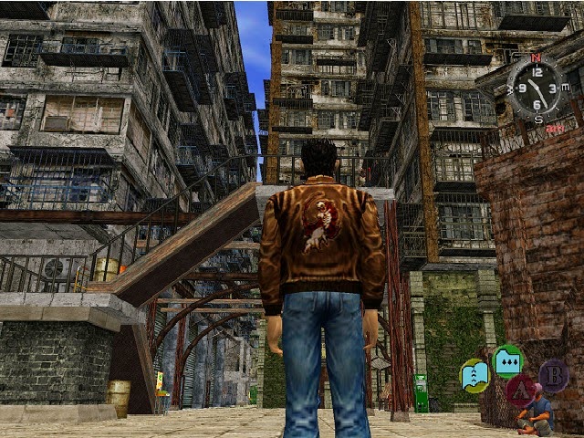 Con decenas de edificios en los que entrar, en el interior de los cuales podemos observar una bulliciosa vida comercial, y también la presencia de mafias, la ambientación de la ciudad es libre también, y se nos presenta como un lugar en decadencia y en ruina dominado por los Yellow Head, un lugar donde la vida de Ryo peligrará en más de una ocasión pero en el que como en toda nuestra aventura contara con el apoyo de personajes amigos. El problema que tiene esta parte del juego es la excesiva repetición de escenarios dentro de los edificios de la ciudad, ya que en la primera planta encontraremos multitud de puestos comerciales pero cuando subamos a las sucesivas plantas de los mismos estos caen en exceso en la repetición hasta el punto de ser todos bastante similares entre sí, aspecto entendible por la época y las limitaciones de memoria y del hardware que alberga el juego.